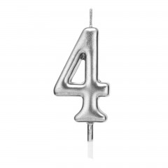 lumanare tort argintie, 4.5 cm, cifra 4