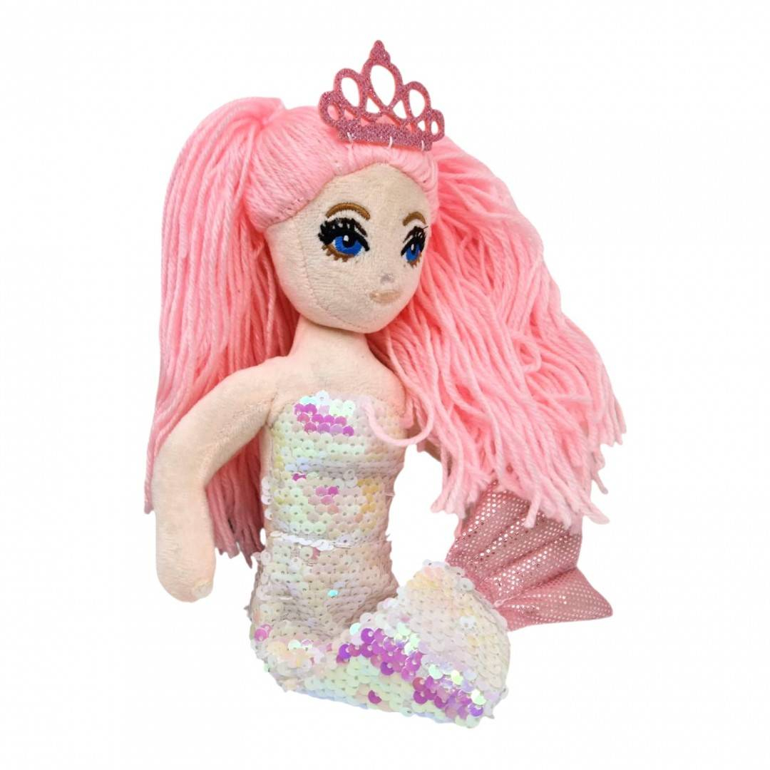 Papusa textila cu detalii brodate, sirena roz, 40 cm