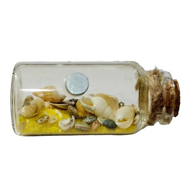 decoratiune magnetica, sticla cu scoici si nisip, 6 cm