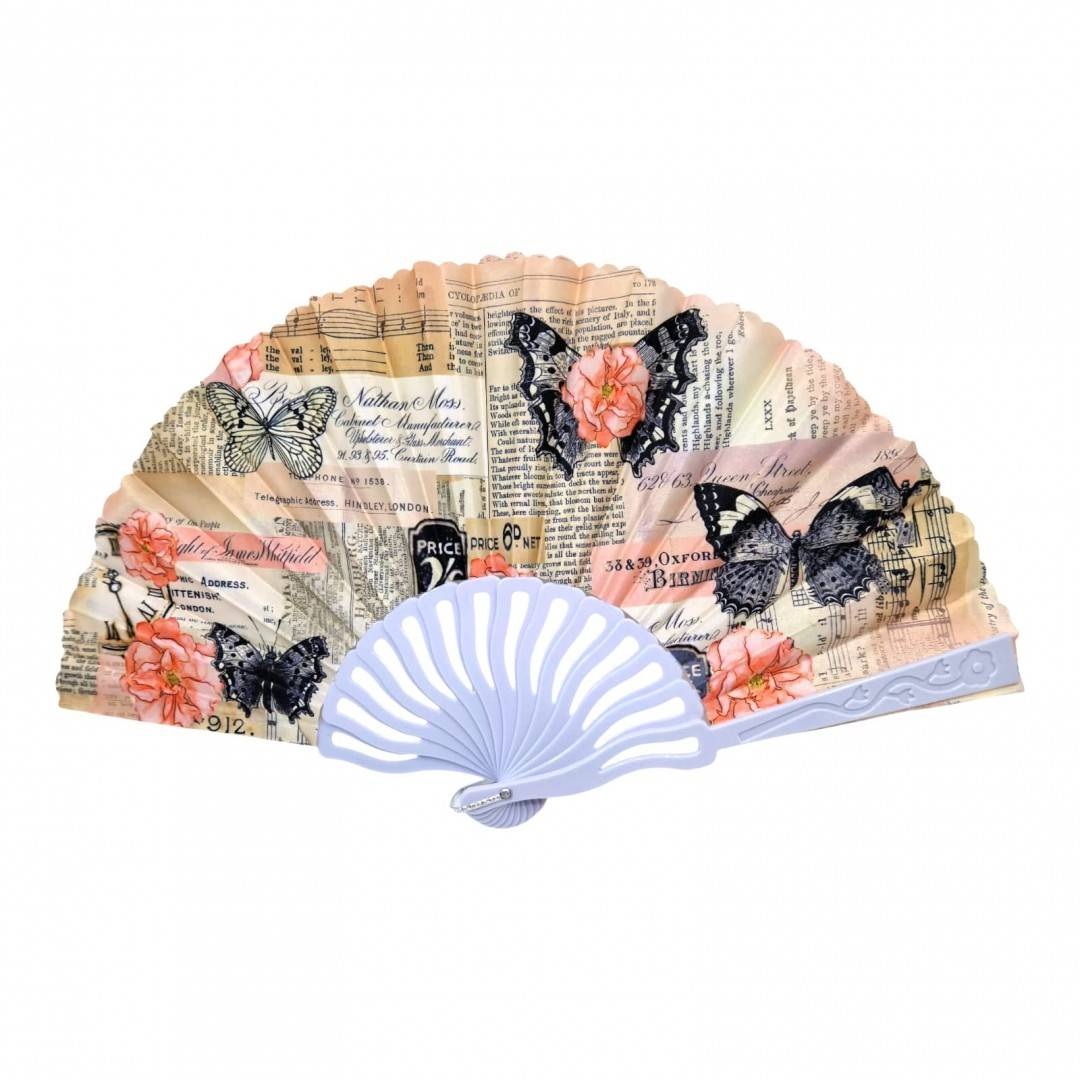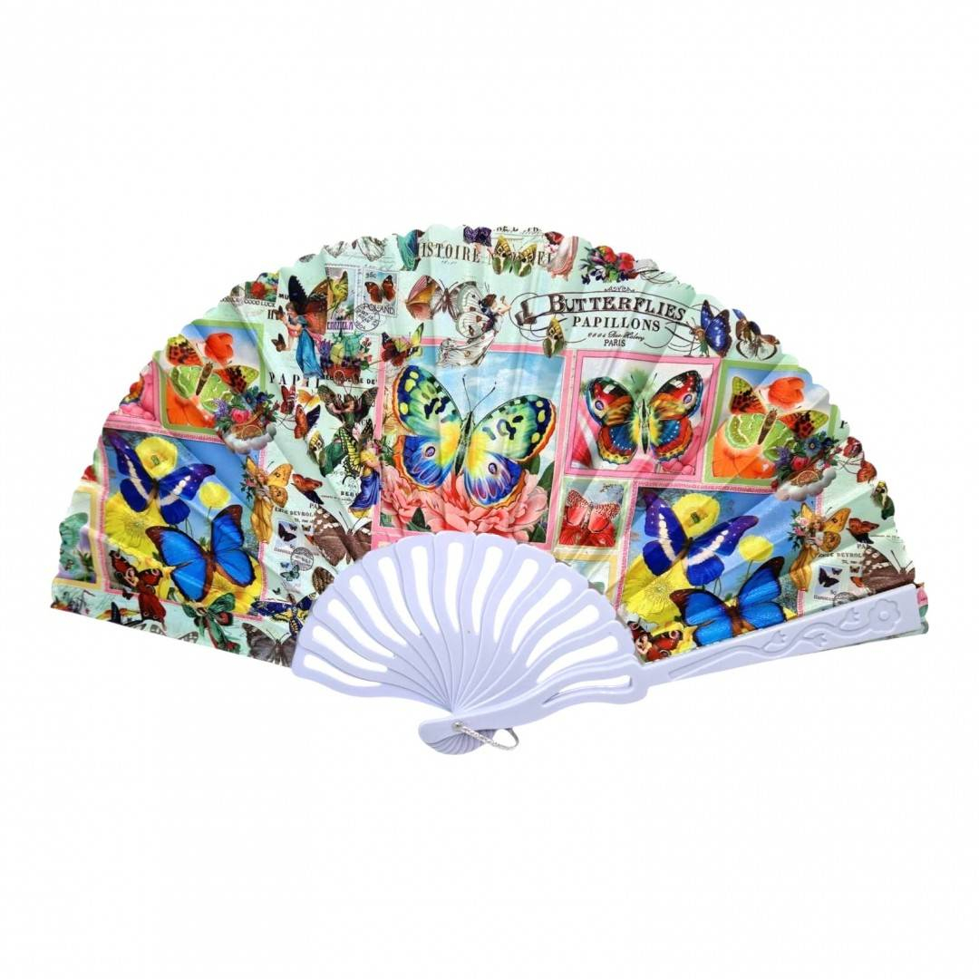 Set 12 evantaie din plastic si material textil, pliabil, model cu fluturi