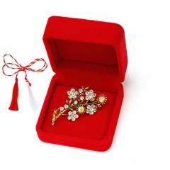 Brosa se livreaza in cutie eleganta din catifea rosie, cu snur de martisor, pregatita pentru a fi oferita in dar.