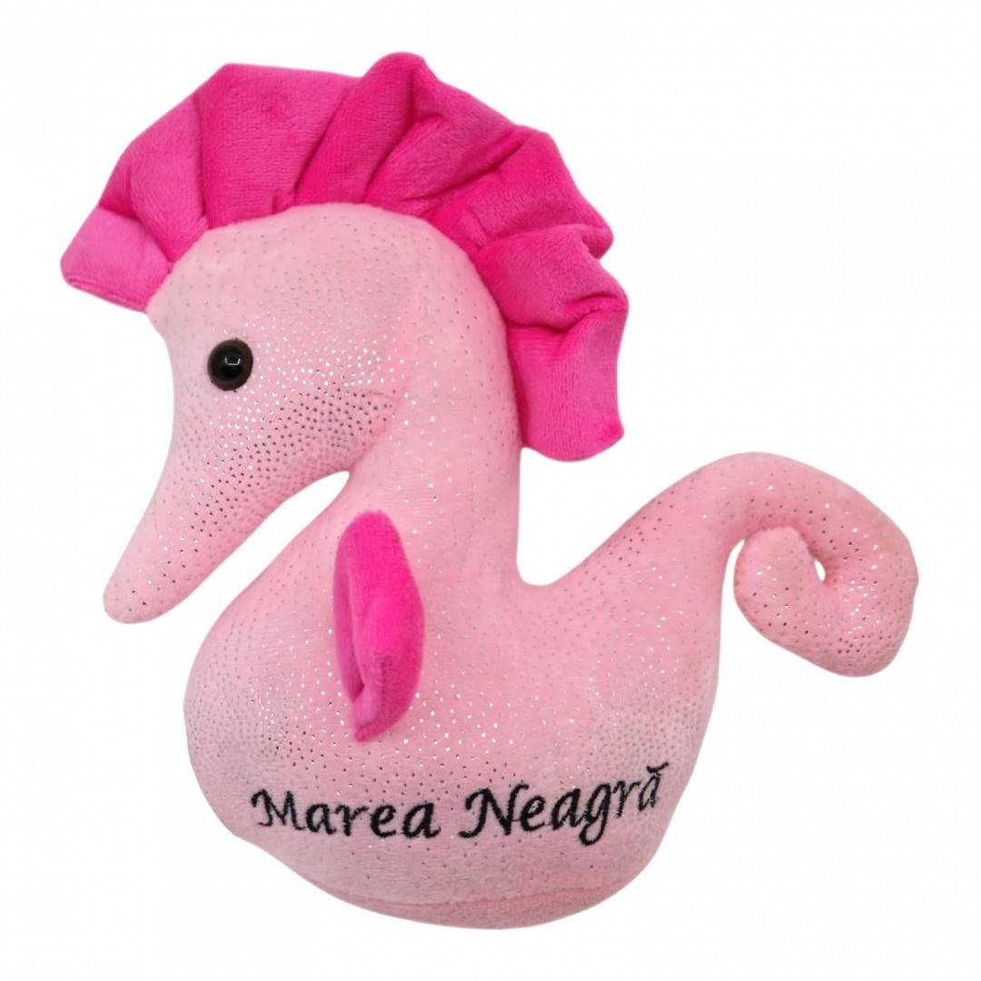 Calutul de mare este realizat din material textil catifelat, este o jucarie personalizata, are scris prin broderie "Marea Neagra".