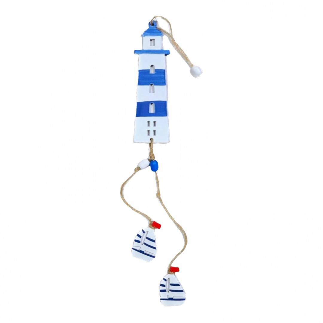 Farul este realizat din lemn, are o sfoara cu inel din lemn pentru a putea fi agatata iar la partea inferioara are suspendate, la distante diferite, doua barcute cu vela, deasemenea din lemn. Decoratiunea este atent finisata iar combinatia dintre sfoara de yuta si lemnul vopsit in culori marine ne trimite catre natura, catre suierul marii involburate.