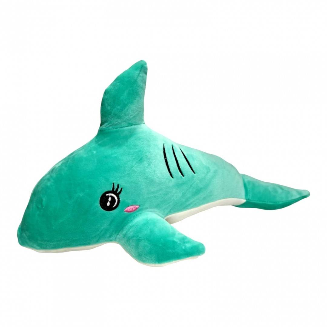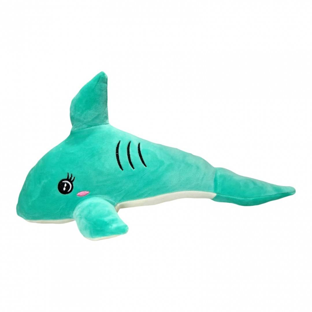 jucarie din plus, rechin cu detalii brodate, 40cm, vernil