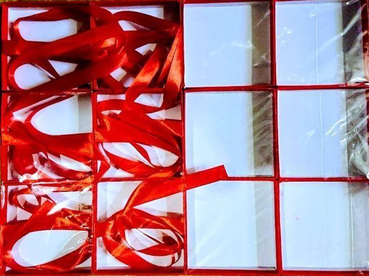 set 6 cutii transparente cu fundita rosie, cutie pentru flori de sapun, esarfe cu martisor, mici decoratiuni, 6x6x10 cm