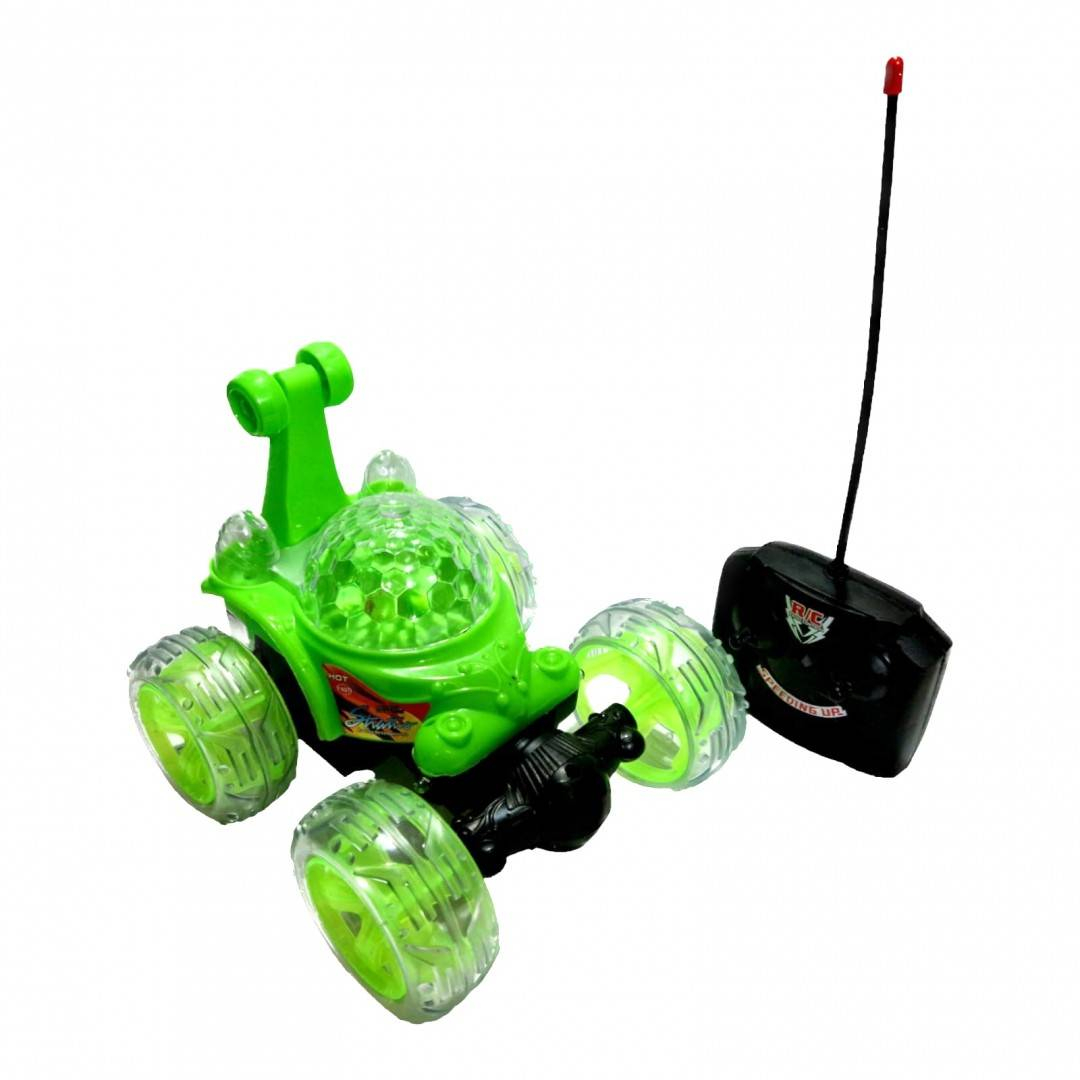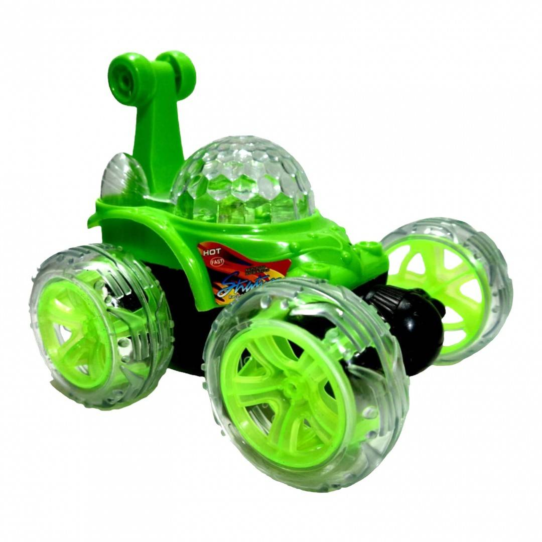 masina de cascadorii cu telecomanda, acumulator inclus, rotatii, lumini si sunete, verde