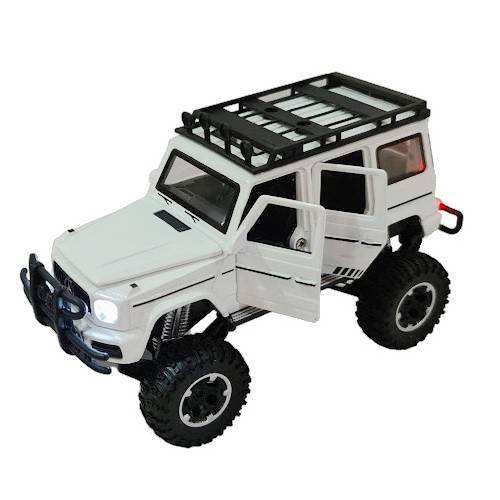 Masina metalica cu amortizoare si roti din cauciuc, macheta cu usi care se deschid, lumini si sunete, 1:32, SUV alb/rosu