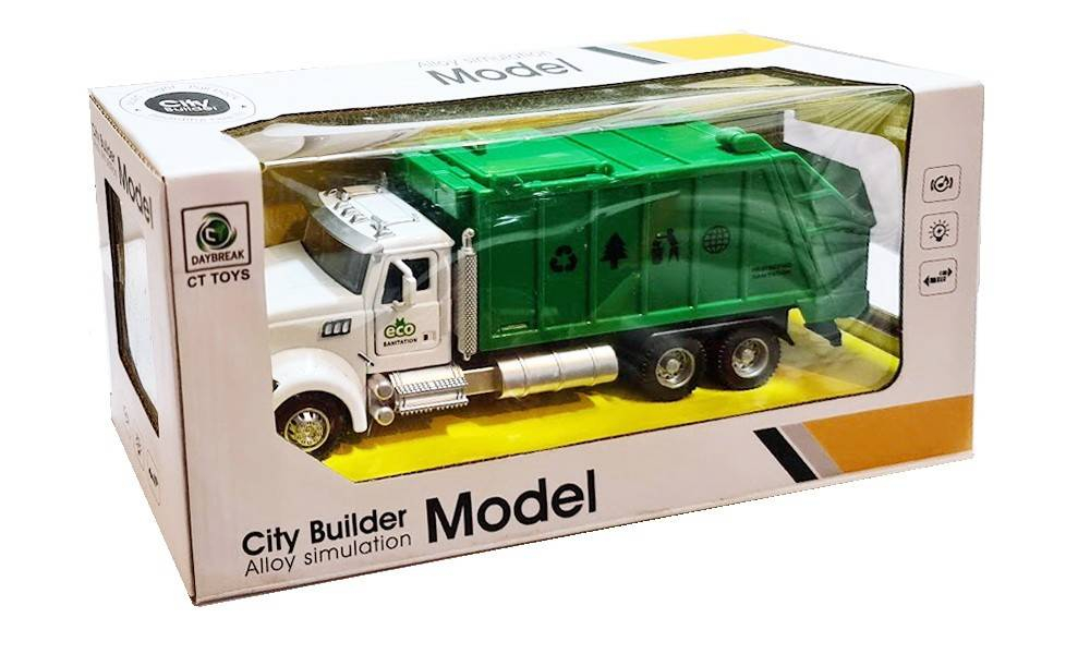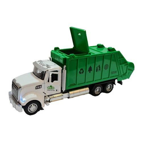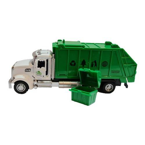 Masinuta de gunoi este realizata din metal si are un aspect realist. Se aprind farurile, are sunete reale de masina, ușile cabinei se deschid, usa din spate este rabatabila iar pubela se poate detasa.