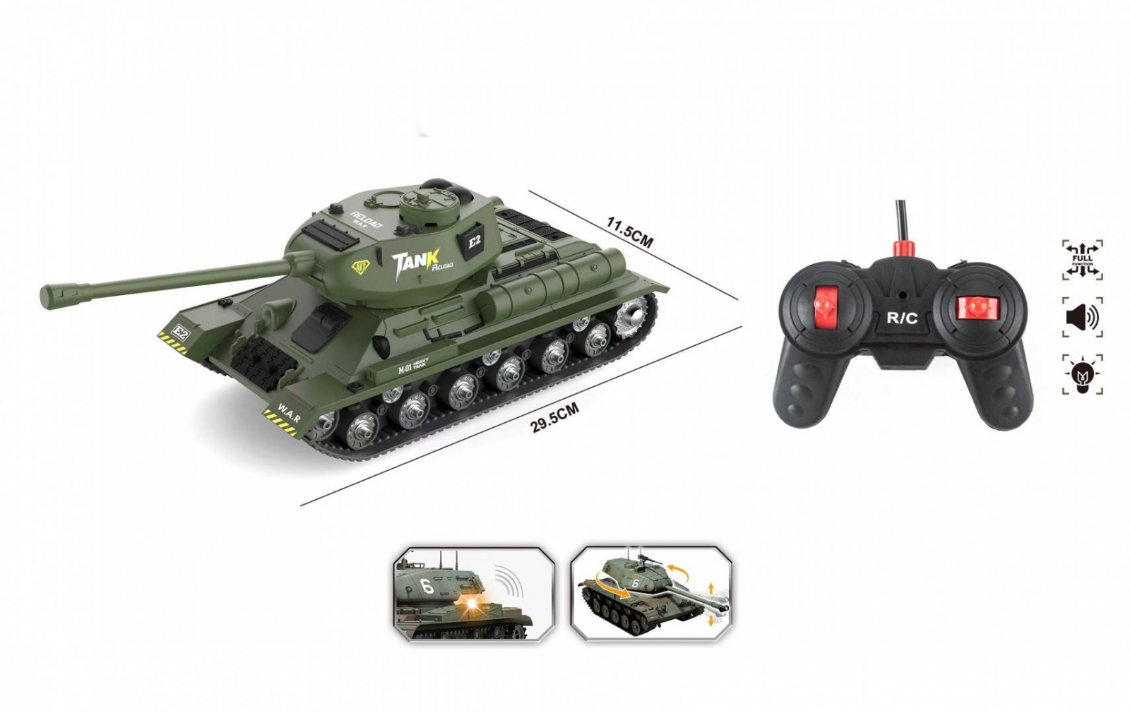 Tancul este realizat din plastic, reproduce cu exactitate cele mai mici detalii ale unui tanc real. Are lumini si sunete de armare si lovire a tintelor inamice. Tunul se roteste manual la 360 grade.